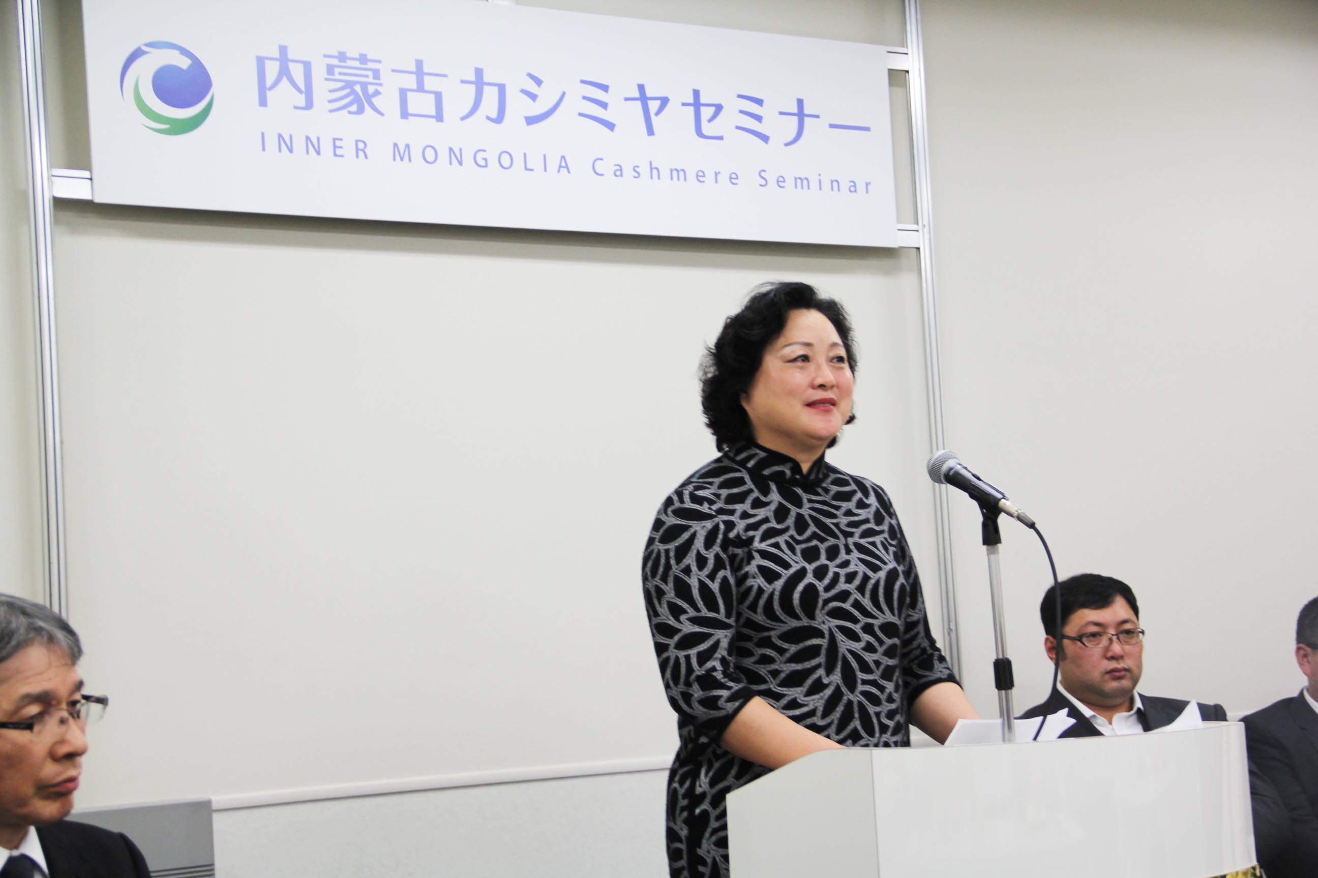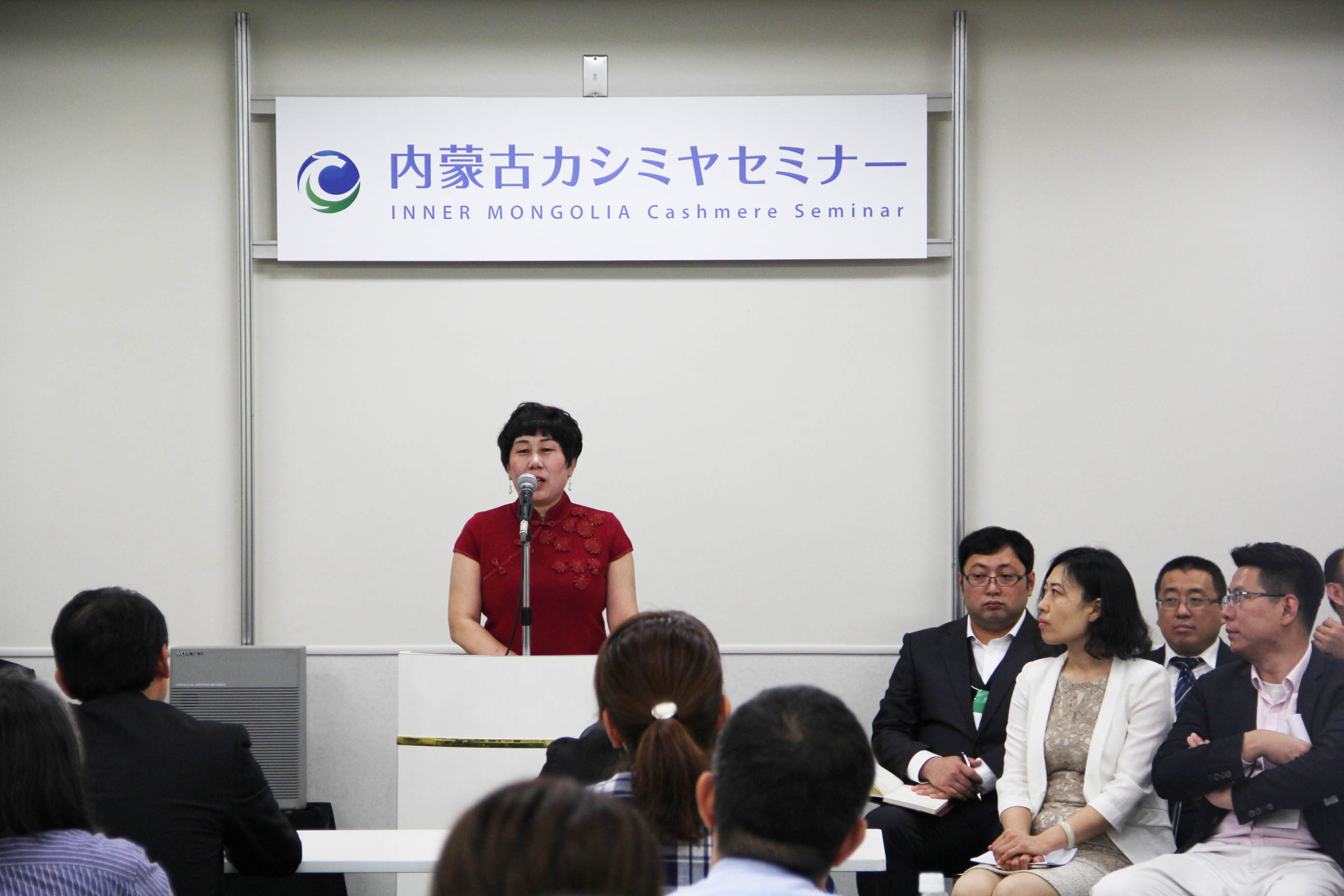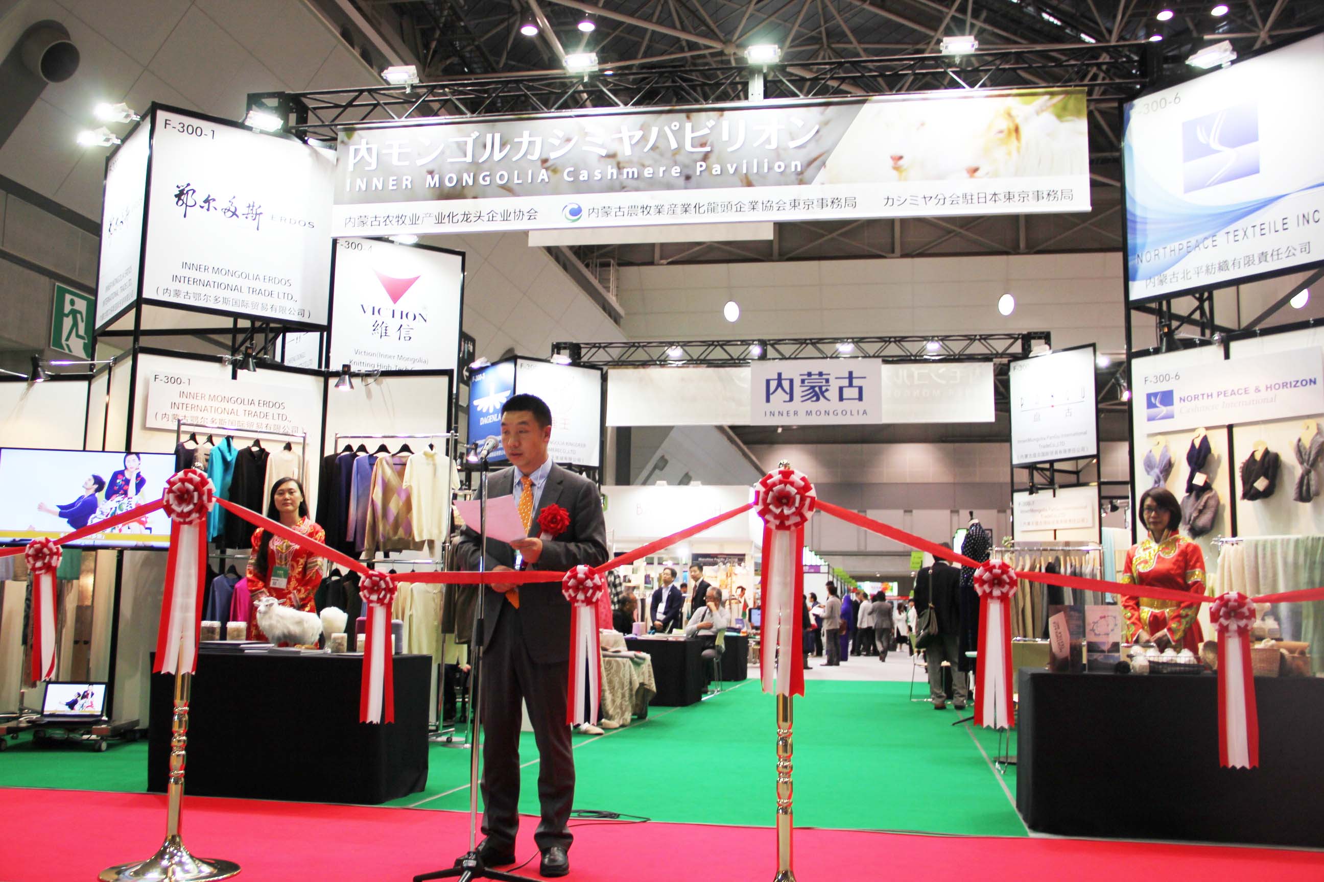 2016426日上午11時,在內(nèi)蒙古羊絨展區(qū)前,舉行了盛大的開業(yè)剪彩儀式,內(nèi)蒙古自治農(nóng)牧業(yè)廳產(chǎn)業(yè)化處副處長郟金梅、內(nèi)蒙古農(nóng)牧產(chǎn)業(yè)化龍頭企業(yè)協(xié)會會長閆樹春、內(nèi)蒙古農(nóng)牧產(chǎn)業(yè)化龍頭企業(yè)協(xié)會羊絨產(chǎn)業(yè)分會會長王風之出席剪彩儀式,并分別就政府支持、協(xié)會服務(wù)和企業(yè)自律發(fā)展等幾方面做了精彩致辭。郟金梅副處長表示,希望通過此次活動,使得社會各界代表能夠贏得機遇、拓展空間,取得豐碩的成果,同時真誠盼望各方來賓、新老朋友能夠進一步了解內(nèi)蒙古羊絨,認識內(nèi)蒙古羊絨,并以此為契機,加強內(nèi)蒙古羊絨界與日本企業(yè)的合作,攜手發(fā)展,實現(xiàn)共贏,共創(chuàng)輝煌。閆樹春會長在致辭中講到,我們此行不僅是要展示內(nèi)蒙古羊絨原料優(yōu)勢地位和行業(yè)加工的專業(yè)性,更希望能充分利用各個平臺廣泛交流,探討合作途徑的契合點,推動兩國羊絨行業(yè)多方共贏,共同提升全球市場對羊絨產(chǎn)品的認知度,希望我們的羊絨企業(yè)能團結(jié)一致,實現(xiàn)羊絨產(chǎn)業(yè)的可持續(xù)發(fā)展。羊絨產(chǎn)業(yè)分會會長王風之在致辭中表示,通過內(nèi)蒙古農(nóng)牧業(yè)產(chǎn)業(yè)化龍頭企業(yè)協(xié)會羊絨分會的平臺,我們勢必會在培育超細超長型產(chǎn)絨山羊、提升優(yōu)質(zhì)種群的規(guī)模、建立行業(yè)質(zhì)量標準和抱團發(fā)展,積極進行海外市場渠道、品牌、投資等多方面取得突破性進展,致力于將中國內(nèi)蒙古羊絨打造成為全球性的產(chǎn)業(yè)品牌。