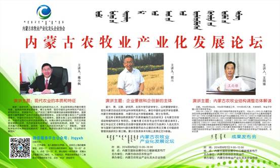 綠博會期間,由自治區(qū)農(nóng)牧業(yè)廳主辦、內(nèi)蒙古農(nóng)牧業(yè)產(chǎn)業(yè)化龍頭企業(yè)協(xié)會承辦的內(nèi)蒙古農(nóng)牧業(yè)產(chǎn)業(yè)化發(fā)展論壇如期舉行。論壇旨在推動現(xiàn)代農(nóng)牧業(yè)發(fā)展方式轉(zhuǎn)變,聚焦農(nóng)牧業(yè)供給側(cè)結(jié)構(gòu)性改革和互聯(lián)網(wǎng)+發(fā)展思路,邀請區(qū)內(nèi)外農(nóng)牧業(yè)領(lǐng)域知名專家和學(xué)者現(xiàn)場傳授,共同探討,共享綠博會成果,共商產(chǎn)業(yè)發(fā)展大計。論壇同期發(fā)布第四屆內(nèi)蒙古名優(yōu)特農(nóng)畜產(chǎn)品和第三屆包裝設(shè)計大賽評審結(jié)果,內(nèi)蒙古日報、農(nóng)民日報82日第四版同時公布獲獎名單,敬請關(guān)注。