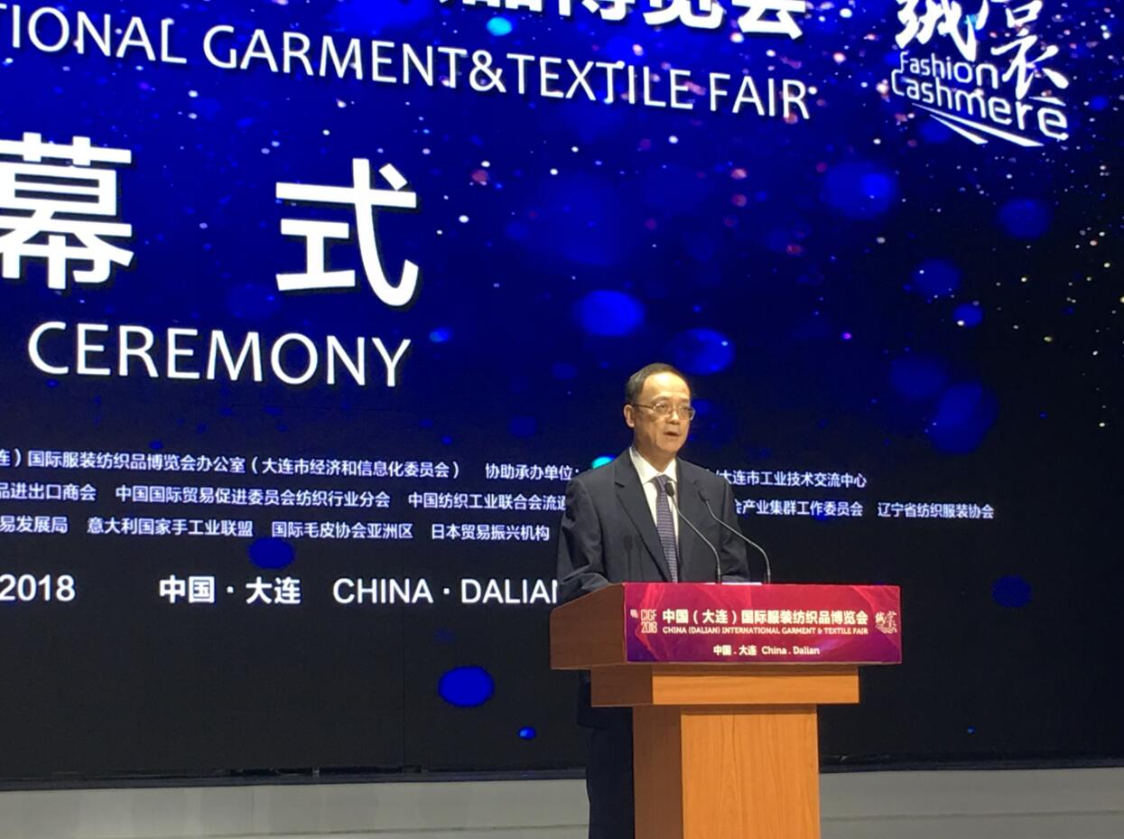 國(guó)家商務(wù)部副部長(zhǎng)王炳南、全國(guó)人大農(nóng)業(yè)與農(nóng)村委員會(huì)副主任委員李春生、國(guó)家工信部消費(fèi)品工業(yè)司副司長(zhǎng)曹學(xué)軍、商務(wù)部住大連特派員高尚德、商務(wù)部外貿(mào)發(fā)展局副局長(zhǎng)賈國(guó)勇及有關(guān)行業(yè)協(xié)會(huì)負(fù)責(zé)人、遼寧省和大連市領(lǐng)導(dǎo)及國(guó)際嘉賓等出席開幕式。內(nèi)蒙古農(nóng)牧業(yè)產(chǎn)業(yè)化龍頭企業(yè)協(xié)會(huì)執(zhí)行會(huì)長(zhǎng)林永亮、協(xié)會(huì)副會(huì)長(zhǎng)—內(nèi)蒙古鹿王羊絨制品有限公司董事長(zhǎng)鄭浩生、維信(內(nèi)蒙古)羊絨集團(tuán)有限公司總經(jīng)理郝佳林、內(nèi)蒙古大盛業(yè)羊絨制品有限公司總經(jīng)理魯耀武應(yīng)邀出席開幕式。