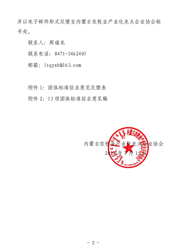 標(biāo)題:內(nèi)蒙古農(nóng)牧業(yè)產(chǎn)業(yè)化龍頭企業(yè)協(xié)會關(guān)于《咸奶茶粉配方》《咸奶茶粉加工工藝規(guī)程》等13項(xiàng)團(tuán)體標(biāo)準(zhǔn)征求意見的通知