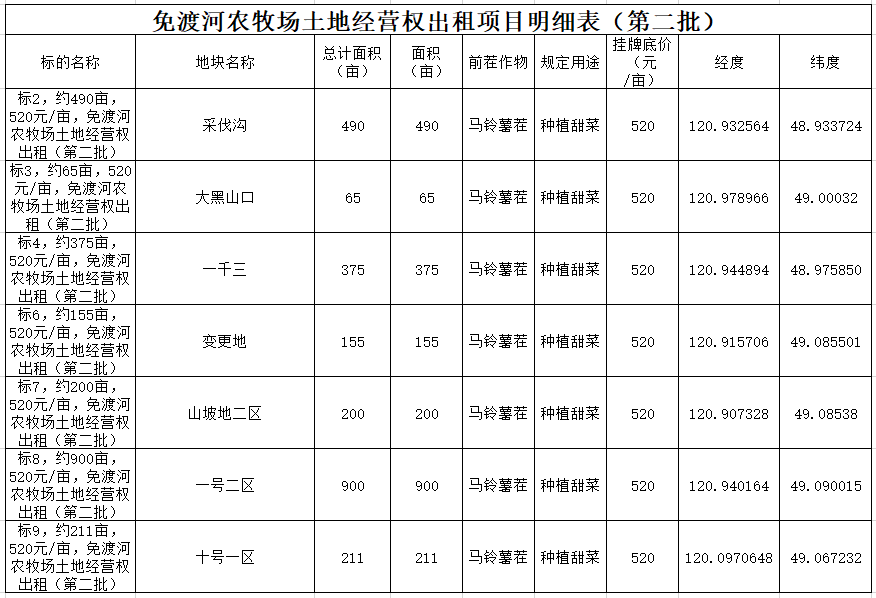 4.規(guī)定用途:第一批種植馬鈴薯,第二批種植甜菜,詳情以明細表為準(zhǔn)
