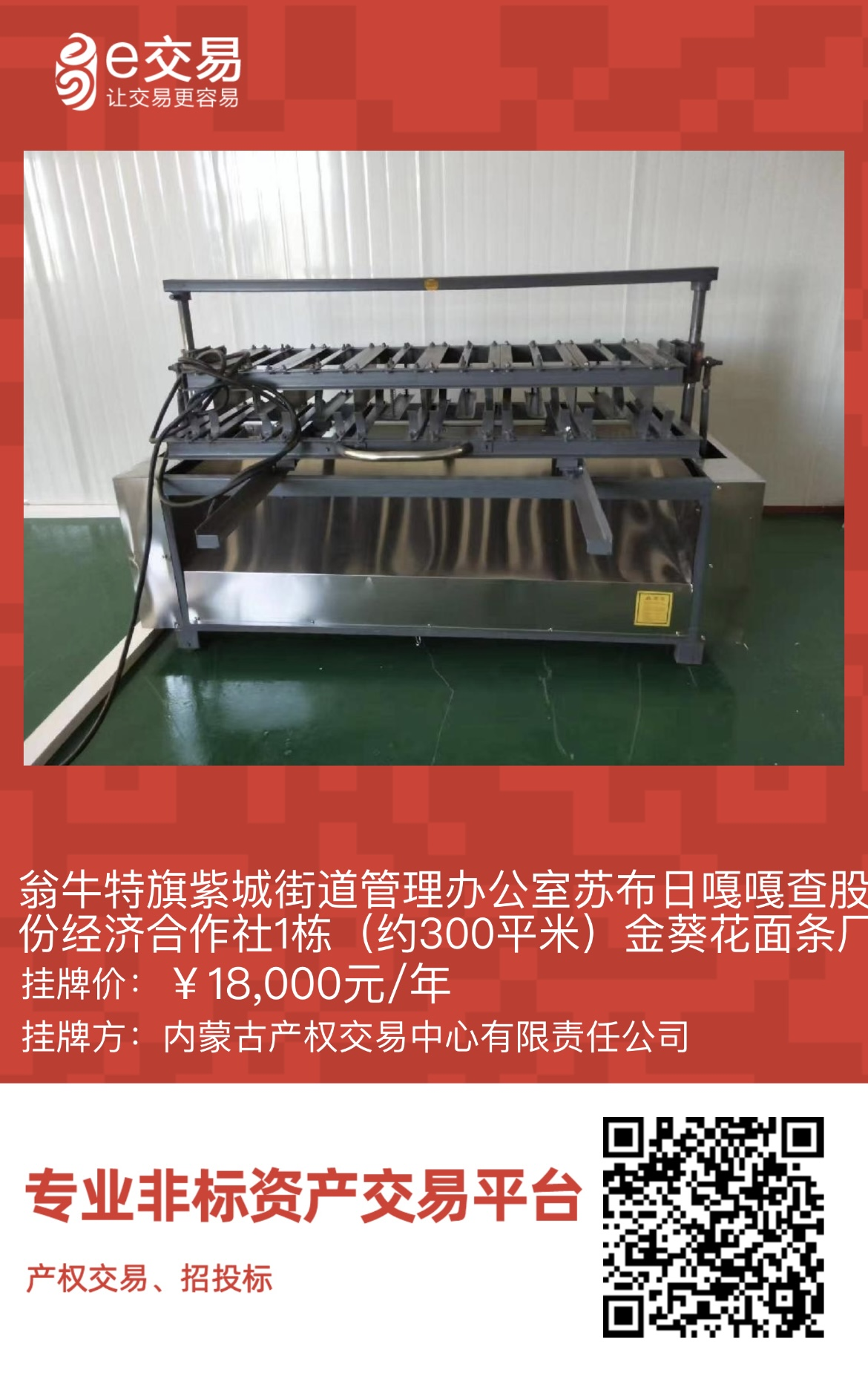 翁牛特旗紫城街道管理辦公室蘇布日嘎嘎查股份經(jīng)濟(jì)合作社1棟(約300平米)金葵花面條廠廠房及設(shè)備出租