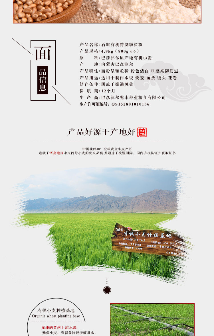產(chǎn)品名稱:雞鹿塞 石碾有機(jī)特制顆粒粉 精品禮盒 4.8kg 河套面粉 餃子粉