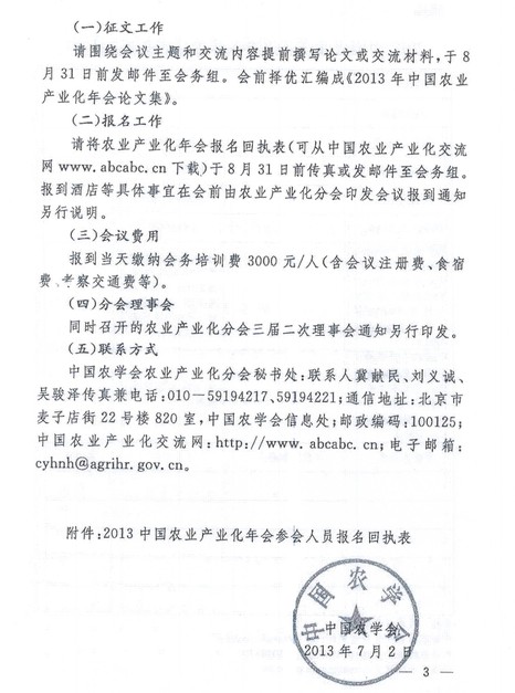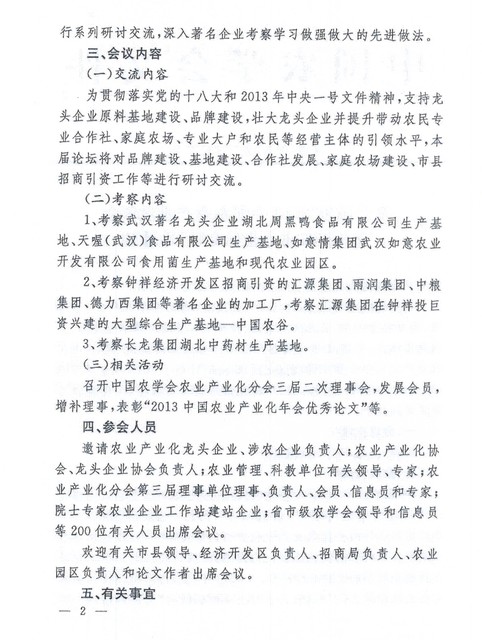 關(guān)于召開“2013中國農(nóng)業(yè)產(chǎn)業(yè)化年會暨中國農(nóng)業(yè)企業(yè)家論壇”的通知