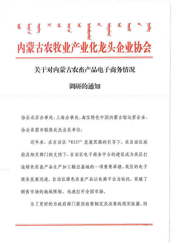 關于對內(nèi)蒙古農(nóng)畜產(chǎn)品電子商務情況調(diào)研的通知