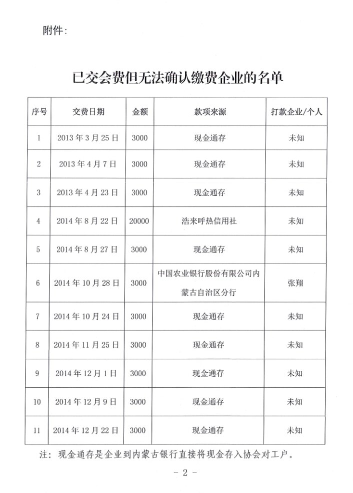 關于公布協(xié)會部分已交會費但無法確認繳費企業(yè)的名單的通知