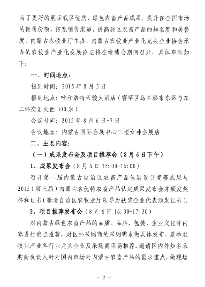 關(guān)于舉辦2015內(nèi)蒙古農(nóng)牧業(yè)產(chǎn)業(yè)化發(fā)展論壇的通知