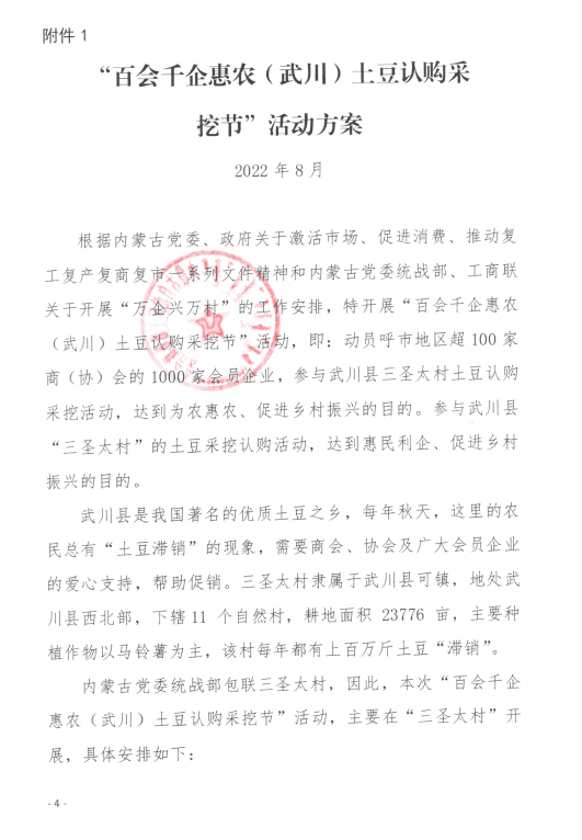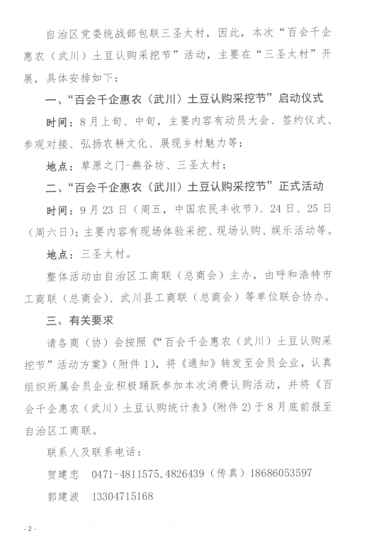 關于舉辦“百會千企惠農(nóng)(武川)土豆認購采挖節(jié)”活動的通知