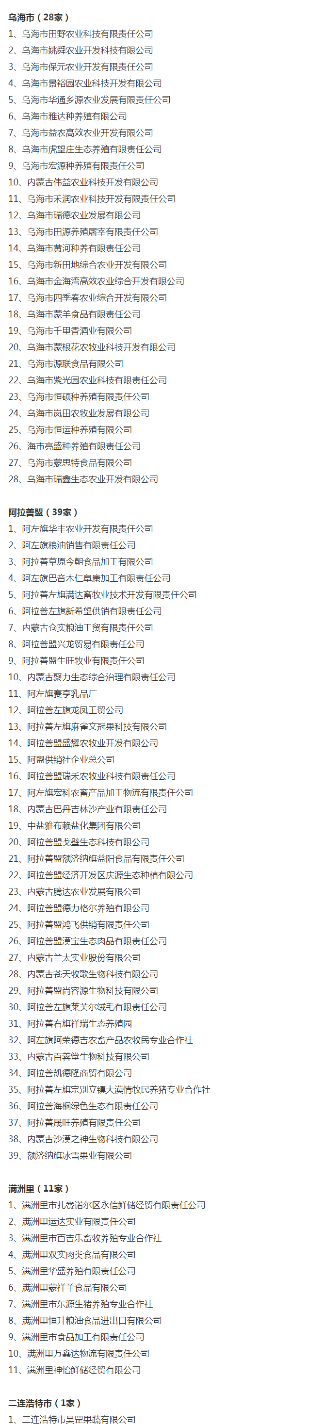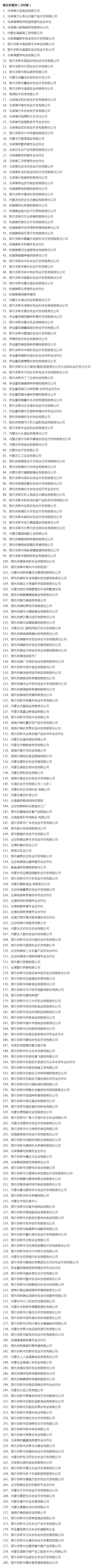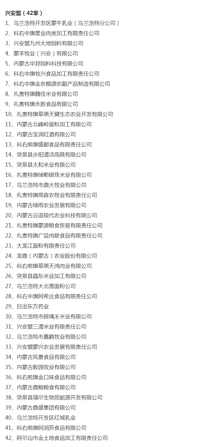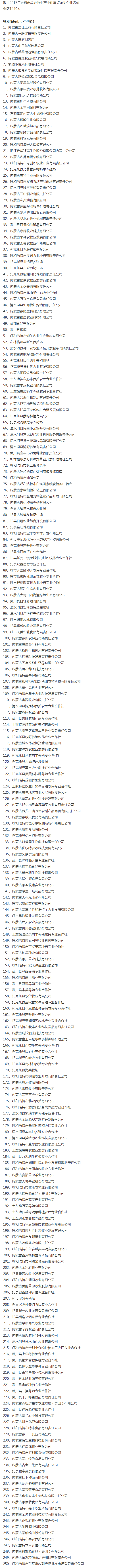 企業(yè)名稱:截止2017年末盟市級農業(yè)產業(yè)化重點龍頭企業(yè)名單