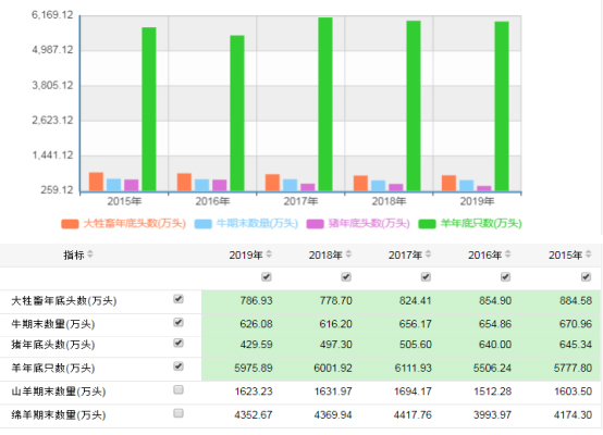 內(nèi)蒙古2015-2019年肉豬、肉羊、肉牛存欄情況