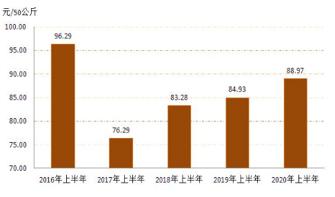3   20162020年上半年全區(qū)小麥?zhǔn)召弮r(jià)格對比圖
