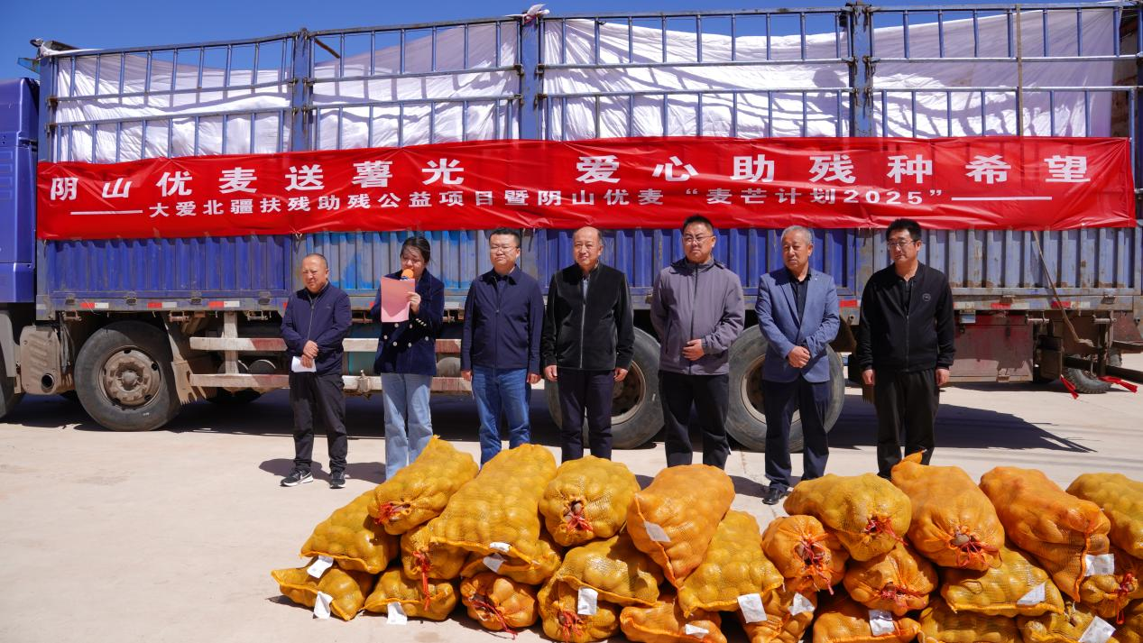 2025年初,陰山優(yōu)麥攜手自治區(qū)殘疾人福利基金會(huì)、烏蘭察布市殘疾人聯(lián)合會(huì)、察右中旗殘疾人聯(lián)合會(huì)共同開展了大愛北疆扶殘助殘公益項(xiàng)目暨陰山優(yōu)麥“麥芒計(jì)劃2025”。陰山優(yōu)麥向內(nèi)蒙古自治區(qū)殘疾人福利基金會(huì)捐贈(zèng)價(jià)值100萬(wàn)元的物資,并針對(duì)有意向、有耕作能力的馬鈴薯種植殘障農(nóng)戶捐贈(zèng)馬鈴薯種薯、提供幫扶指導(dǎo),為有勞動(dòng)意愿和能力的殘障人士提供就業(yè)崗位,增加殘障人士靈活就業(yè)收入。
